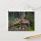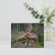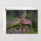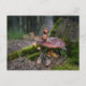 Acorn elf with bike resting on mushroom - funny postcrossing postcard