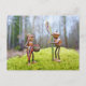 Acorn elves with Easter stick (Easter tradition) - funny Easter postcard with decorated eggs