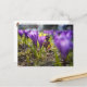 Acorn elf with purple crocus flower spring postcard