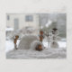 Acorn elves playing with the snow, building iglu and snowman winter postcard - funny postcrossing postcard