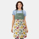 An apron with a pattern of acorn and its fall leaves on a light brown background and a customisable first name or text of your choice above on a greyish green background. A lovely gift for a friend who loves nuts. It could also be used in a store or in a garden when you're working!