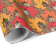 Fall colour pattern in browns and oranges, maple leaves and acorns.