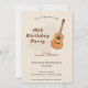 An invitation to a birthday party, featuring an illustration of an acoustic guitar on a beige, stained background. Ideal for a music birthday party, but also for a classical guitar recital or a concert!
