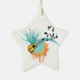 Acoustic guitar custom ornaments. A cool, fun design featuring an acoustic guitar on turquoise, yellow and orange colour splash. Behind it there is a turquoise tree silhouette and black birds going away along curved bands of colour.