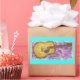 shows colourful acoustic guitar with yellow patina from original mixed media art !