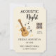 Set the stage for a memorable evening with this stylish Acoustic Night ticket invitation. Designed to resemble a real event pass, this layout features a guitar illustration, musical notes, seating details, and a QR code area for a modern concert experience.