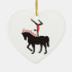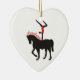 Acrobatics on horseback custom ornament featuring a woman in red doing acrobatics on a black horse silhouette.