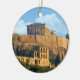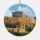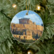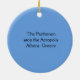 Round ceramic ornament with an image of the glorious Parthenon atop the Acropolis and the arches of the Herodes Atticus amphitheatre below in Athens, Greece. The back is blue with customisable text. See the entire Greece Ornament collection in the HOME section.