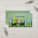 Customise this business card! Two silhouettes of horses and a rider, galloping across a grass meadow. Texturised background in refreshing greens. Pine trees, snow capped mountains and a sunset in the background. From an original mixed media painting by Minerva Bloom for Angela Piraino.