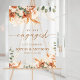 Perfect for indoor or outdoor venues, this floral welcome sign complements your engagement party decor and sets the tone for your special day. Coordinate with matching invitations, table signs, and stationery for a cohesive look.