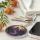 A great fashion accessory for the Fall or Halloween. Spider web ring surrounds a Halloween castle scene with spooky trees, bats, and pumpkins.