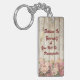 Acrylic key chain with wood like background with the saying "Believe in Yourself," a beautiful reminder of what you can achieve when you believe in yourself!