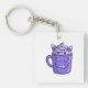 A man with dark hair and a beard is shown from the waist up, wearing a plain white t-shirt and blue jeans. He is looking to his right with a slight smile. Centred on his t-shirt is a graphic of a purple mug designed with a spooky, carved-face expression, topped with a large dollop of white whipped cream and two small purple horns or ears, along with a few candy corn decorations. The background is a solid, light colour.