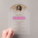 This modern acrylic photo Quinceneara Invitation can be clear or frosted, rectangle or arch shaped as desired to suit your needs. You can change the colour of the text in design tools.