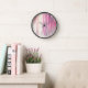 This unique, high-quality wall clock is vibrantly printed, protected by a high-impact plexiglass crystal face and features a pre-installed backside hanging slot for easy hanging and a non-ticking design.