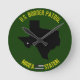 The clock did not take as long to arrive as I thought it might and was extremely well packaged. I didn't do the measurements so I didn't realize it is a little smaller than the average clock but that does not matter (just make sure you check if that's important to you).It is really nifty! It seems very solid and well made not flimsy at all. It has been going well and has kept good time in its few weeks on my wall. Nice product. Gets noticed too! Nicer in real life than the picture but true to the picture