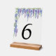Bring a touch of soft elegance to your event with these minimalist table signs, styled with a clean, modern font and delicate purple floral accents. Set on a classic wooden base, each sign blends natural charm with refined beauty—perfect for weddings, bridal showers, or any sophisticated celebration.