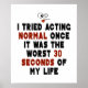 The phrase "I tried acting normal once, it was the worst 30 seconds of my life"