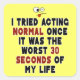 The phrase "I tried acting normal once, it was the worst 30 seconds of my life"