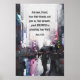 Inspirational quote scripture poster depicts a detailed watercolor painting of a busy city street. It features an encouraging Bible Verse Acts 4:29, "And now, O Lord, hear their threats, and give us, Your servants, great BOLDNESS in preaching Your Word."