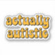 A yellow retro typography design with the words "actually autistic" to support and promote neurodiversity awareness, adhd, and autism acceptance.