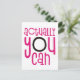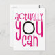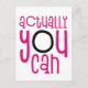 Funky typography with encouraging quote Actually You Can in pink with a touch of black on a white background. The background can be changed to different colour if you so wish.