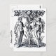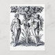 Adam and Eve and the Tree of Knowledge postcard : This vintage art is a woodcut/ illustration of Adam and Eve by artist Jacob Rueff, 1500-1558, from a book on midwifery. It depicts Adam and Eve in the garden of Eden standing beneath the Tree of Knowledge represented here as an interesting blend of skeleton and tree, there is of course a serpent in the tree. it shows when Eve tempts Adam to eat of the fruit of the Tree of Knowledge of Good and Evil.
