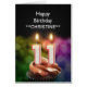 Burning 11th birthday cake candles in the shape of numbers on top of a chocolate cupcake. Customise with the name of the birthday person. Suitable for a man or a woman. See the whole range of cards for ages and relationships in my store. All artwork copyright Norma Cornes