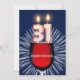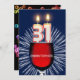 Add a name to customise this unique party invitation. A fun 31st birthday party invitation with happy candle numbers burning on a glass of red wine. See the whole range of invitations and cards in my store.