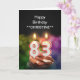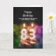 Burning 83rd birthday cake candles in the shape of numbers on top of a chocolate cupcake. Customise with the name of the birthday person. Suitable for a man or a woman. See the whole range of cards for ages and relationships in my store. All artwork copyright Norma Cornes
