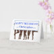 All you can see are their legs! A line of girls holding up a happy birthday sign. Add the name of the birthday boy or girl to personalise this super card.
