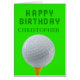 Add a name to make a great golf birthday card. Happy golfing birthday! A golf ball on a tee ready to tee off! A great card for anyone who loves the game of golf. The inside verse reads: