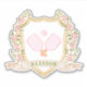 This pickleball themed sticker has a watercolor image of a crest surrounded by branches with green and pink gingham pickleball paddles in the centre. The front has a green trellis pattern with pink bows around the edge with the same pattern on the back. Colours used include moss green, blush pink and and tan. You can add a name.