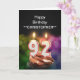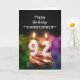 Burning 92nd birthday cake candles in the shape of numbers on top of a chocolate cupcake. Customise with the name of the birthday person. Suitable for a man or a woman. See the whole range of cards for ages and relationships in my store. All artwork copyright Norma Cornes