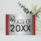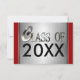 Elegant "Class of 20XX" graduation party, invitations, or announcements. Classy silver "Class Of" in metallic look numbers and letters graphic and a brushed silver background with red borders. Easily add the graduate's year of graduation and your custom text to the back of the card which is brushed silver metal look and red borders to match the front. Easily change the red on the front and back to any colour. Just click on "Customise it" and then "edit" and then "background" to change it. Great for junior and senior high school as well as for college graduates. Remember the special occasion with these cool, custom graduation invitations. Rich looking and stylish, yet affordable!