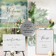 Make a statement and welcome your guests to your event with this elegant welcome acrylic sign! Ability to add on the event text line any event you like. Design with beautiful modern handwritten calligraphy details. 12" x 18" is simply our default size, you can choose from several size options. "IMPORTANT NOTE: sign in a high-quality acrylic sheet with the text printed in black and a frosted faux look behind, providing a clear view of the text in all spaces, and giving you the frosted appeal for a fraction of the cost! Small sizes come with a wood block to stand, bigger sizes need an easel or surface to stand so they won't warp. This same sign design is also available in poster print and in foam board options, which you can find in our collection". Part of our "Modern Elegant Wedding and Events Signage" collection with a variety of coordinating products available. Dimensions of sign from demo photo with stand: 24" x 36"