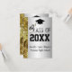 Elegant any year graduation party, invitations, or announcements with a gold glitter sequins printed LOOK added for a little classy bling! Silver "Class Of" cool 3d metallic look graphic on a rich matching silver background. Easily add the year, graduate's name and school name, if desired, on the front and your custom text to the back of the card which has the same background as the front of the card. A black graduation cap with a gold tassel graphic design is also added to the back and the front. Rich looking and stylish, yet affordable! Great for junior and high school seniors as well as the college graduate as well. Remember the special occasion with these custom, classy, stylish graduation invitations.