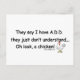 They say I have ADD, they just don't understand... Oh look, a chicken! - Attention Deficit Disorder Humour Saying.