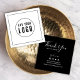 Stylish packaging insert card featuring your logo and a square black border on the front and "Thank You" in modern calligraphy script with the rest of your social media and web information on the back. You can change the back background colour by clicking customise and change background.