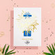 Add Logo Blue Gift Box Fireworks Business Birthday