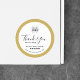 This Leave a Review sticker has the words "Thank You" in calligraphy script and stars in black against a white round centre and an editable border colour (click "customise" and change the background colour in order to change the border colour).