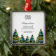 Add Logo Custom Text Christmas Pine Tree Promotion Metal Ornament. Watercolor colourful Christmas pine trees. Insert your logo into the template and customise the text, company name, address and contact information. Business promotion or giveaway for your clients and business partners.
