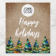 Add Logo Custom Text Christmas Tree Company Wine Label. Rustic beige background and watercolor colourful Christmas tree. Insert your logo into the template and customise the text. Business promotion for your clients and business partners.