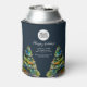 Add your Logo Custom Text Christmas Tree Promotion Can Cooler. Watercolor colourful Christmas tree. Insert your logo into the template and customise the text, company name, address and contact information on the front and on the backside. Business promotion or giveaway for your clients and business partners.