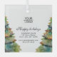 Add your Logo Custom Text Christmas Tree Promotion Glass Ornament. Watercolor colourful Christmas tree. Insert your logo into the template and customise the text, company name, address and contact information on the front and on the backside. Business promotion or giveaway for your clients and business partners.