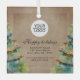 Rustic Add your Logo Custom Text Christmas Tree Promotion Glass Ornament. Rustic beige background and watercolor colorful Christmas tree. Insert your logo into the template and customize the text, company name, address and contact information on the front and on the backside. Business promotion or giveaway for your clients and business partners.