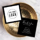 Stylish packaging insert card featuring your logo against a white square centre with an editable border colour (click customise and change background colour to change border colour from black to a colour of your choice) on the front and "Thank You" in modern calligraphy script with the rest of your social media and web information on the back. You can also change the back background colour by clicking customise and change background.
