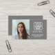Modern, simple and professional business cards on grey background with white typography to match your custom logo features the employees photo on the front.