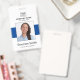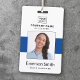 Upload your own logo and photo and make custom name tags and employee id badges for your company. Easy to use template. You can resize the photo, logo and bar code with the design tool. To resize the photo you first need to unmask it. Fonts and colours are customisable.