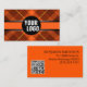 Add Logo & QR Code Orange Plaid Modern Branded Business Card